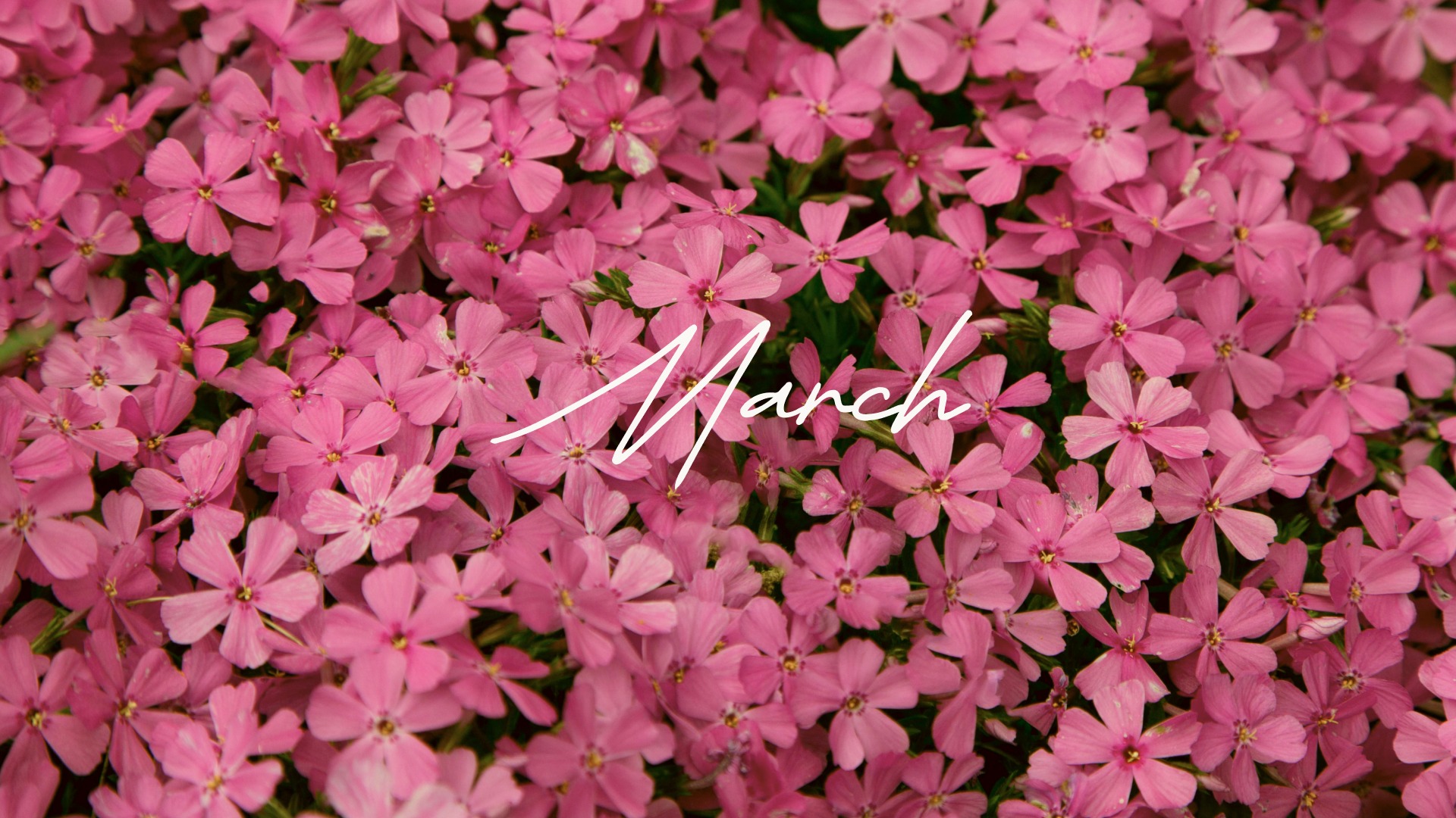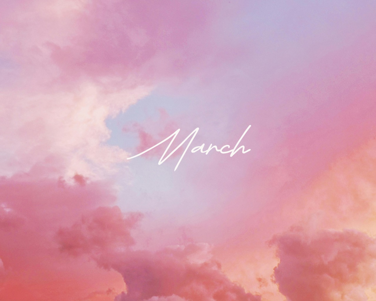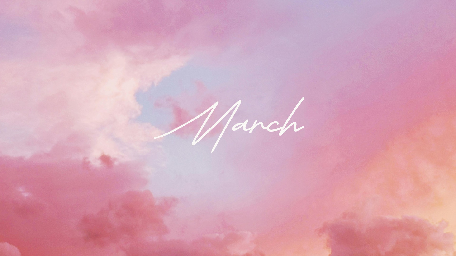 Gdy tylko zobaczyłam to zdjęcie z różowym niebem, od razu wiedziałam, że właśnie ten kolor będzie przewodnim dla tapet na nadchodzący miesiąc. Grafiką natomiast są kwiaty, które zdecydowanie przywodzą na myśl pierwszy dzień wiosny i naturę budzącą się do życia, co stanowi iście marcowy motyw.
